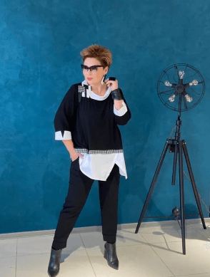 Многослойные черно-белые наряды. Эти комбинации скрывают излишний вес и подходят как для повседневной носки, так и для деловых встреч.