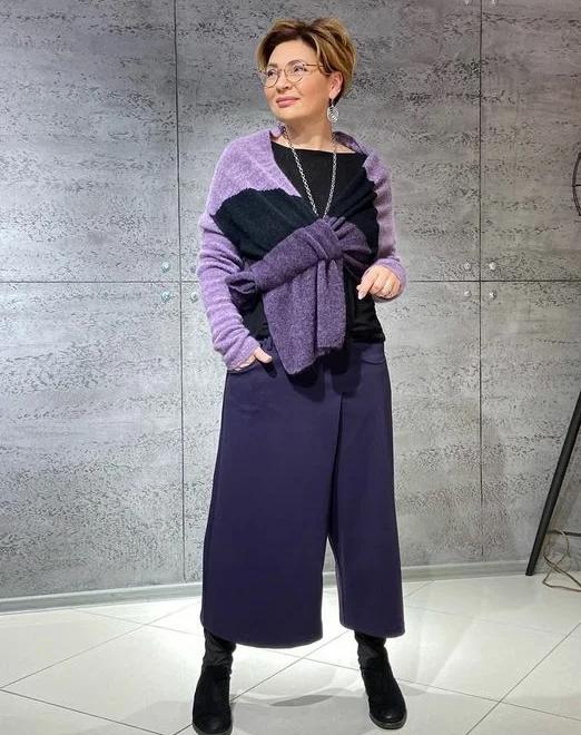 Комплекты в фиолетовых тонах. Базовая одежда в этих оттенках легко сочетается с черными и белыми вещами, создавая стильный образ.