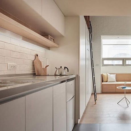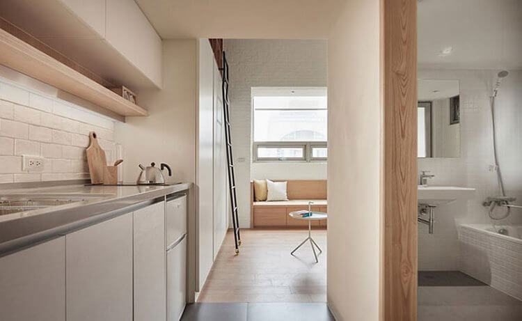 Студия «Little Design» из Тайбэя на Тайване максимально использовала пространство в квартире площадью 22 квадратных метра. Хозяин квартиры много времени проводит за границей, поэтому дома ему нужны только хороший сон и горячая ванна.