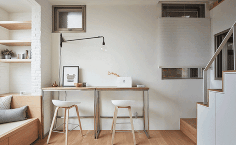 Ограниченное пространство требует принятия инновационных решений, поэтому пришлось обыграть столы.