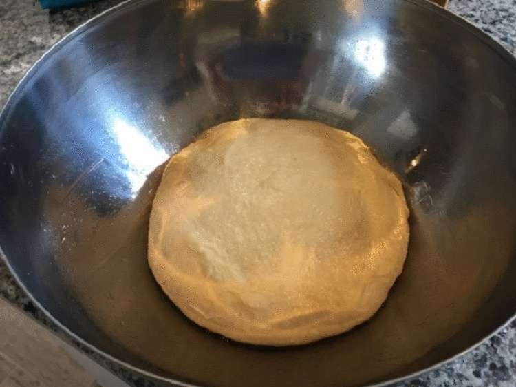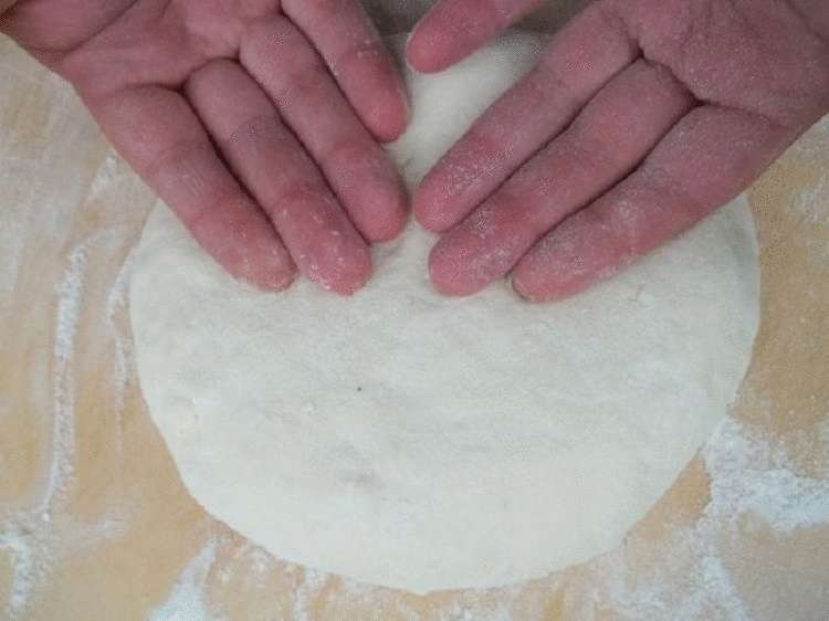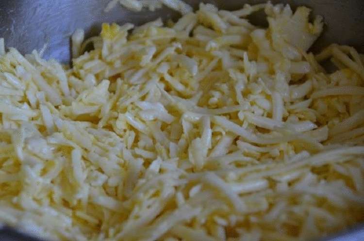 Тесто должно получится мягким и эластичным. Кладем тесто в глубокую миску и накрываем сверху чистым полотенцем. Пусть настоится. Чтобы приготовить начинку, к натертому сыру добавляем одно яйцо. Формируем из теста колбаску и разделяем ее на девять частей. Из каждой раскатываем лепешку.