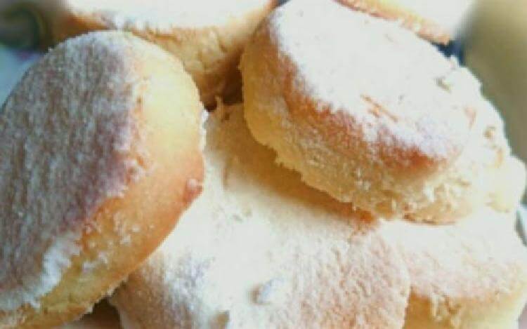 - Вылейте тесто на стол, усыпанный 1 стак. муки, начинайте замешивать его руками и в процессе добавьте остальную муку. Разделите тесто на 3 части, каждую скатайте колбаской. Нарежьте скатанное тесто на кольца. Противень застелите пекарской бумагой и выложите на него печенье. Выпекайте 15 минут при температуре 180 градусов. Готовые изделия посыпьте остальной сахарной пудрой, пока они горячие.