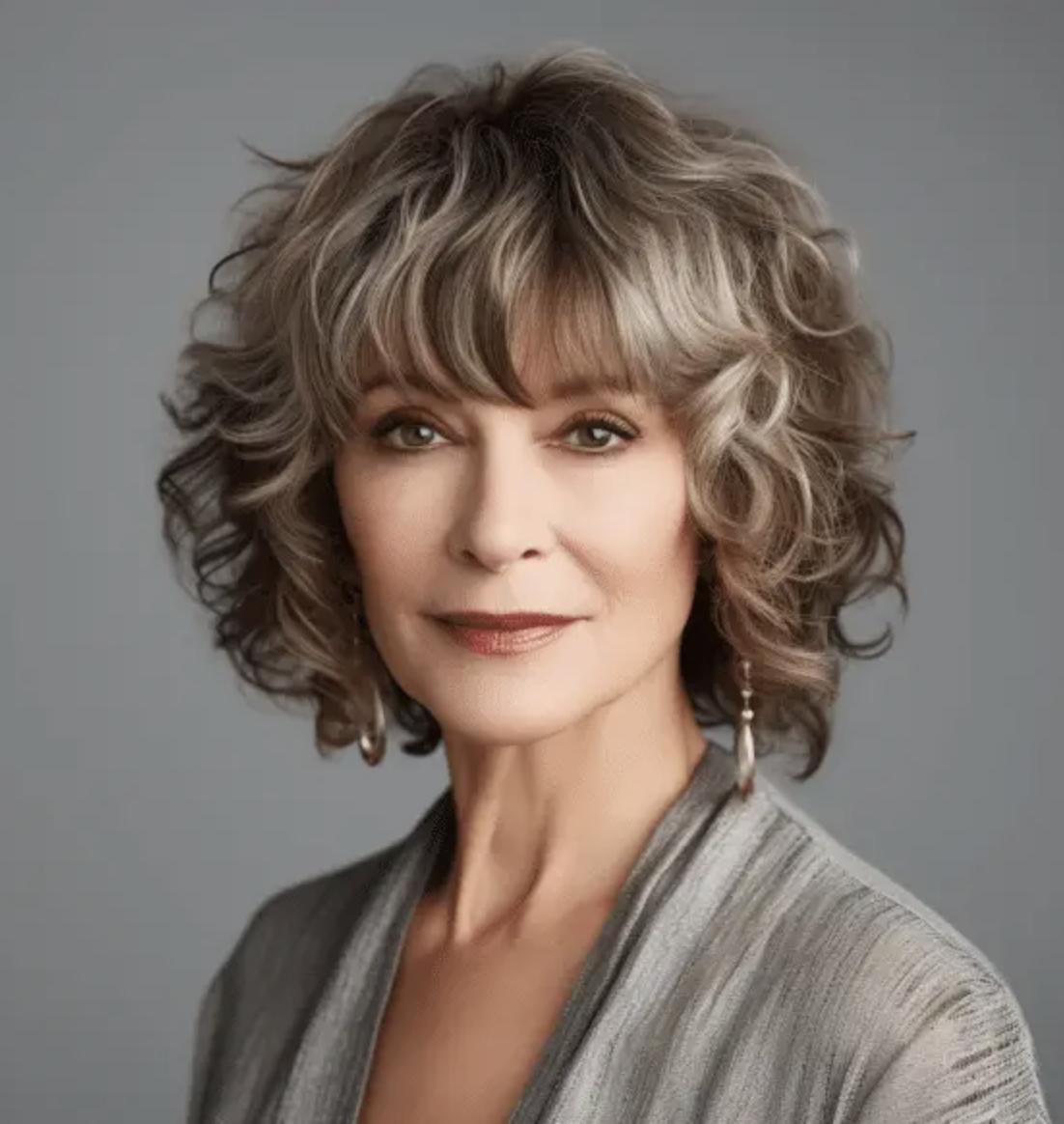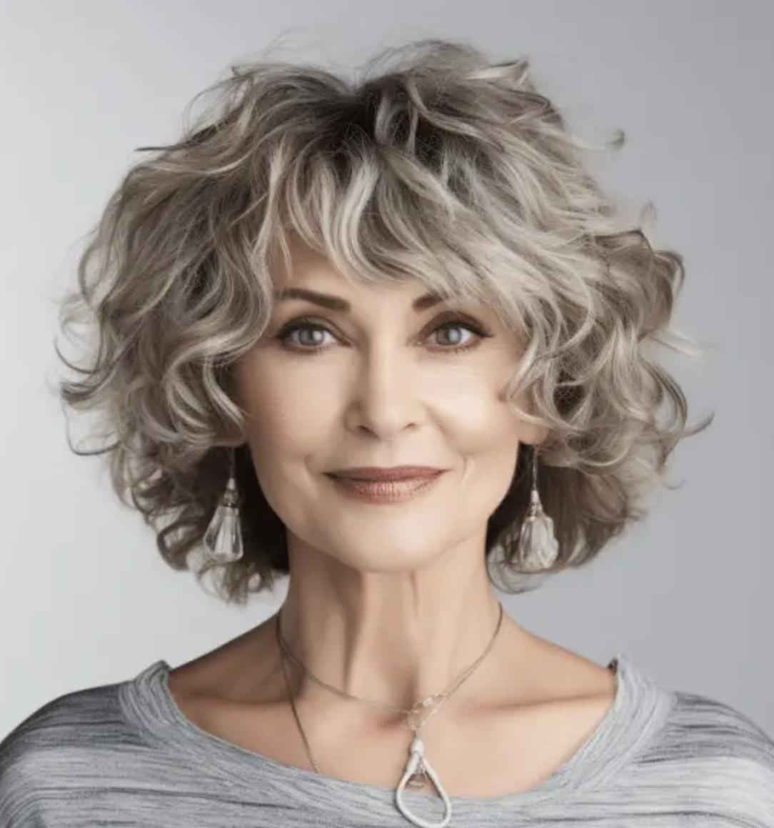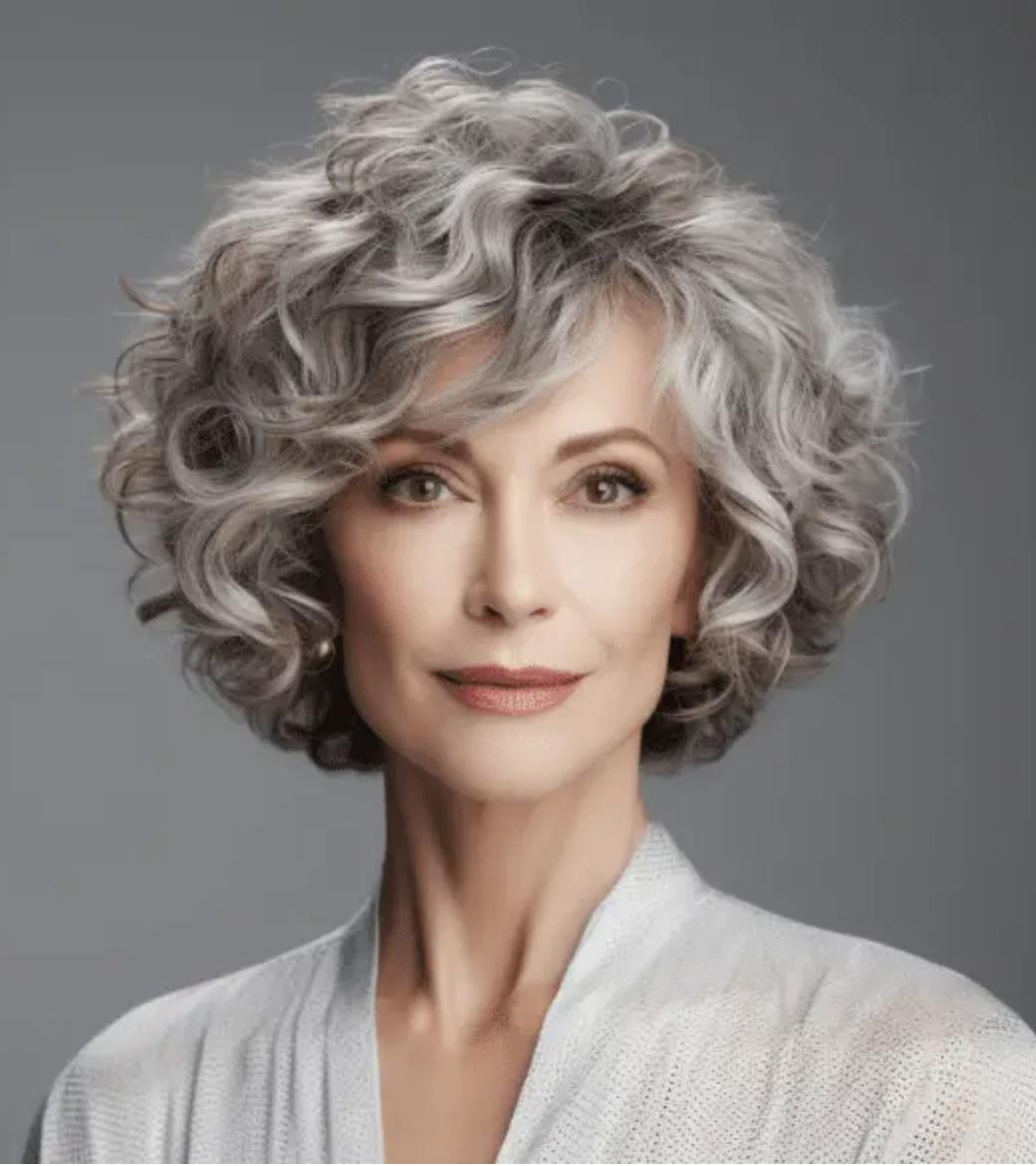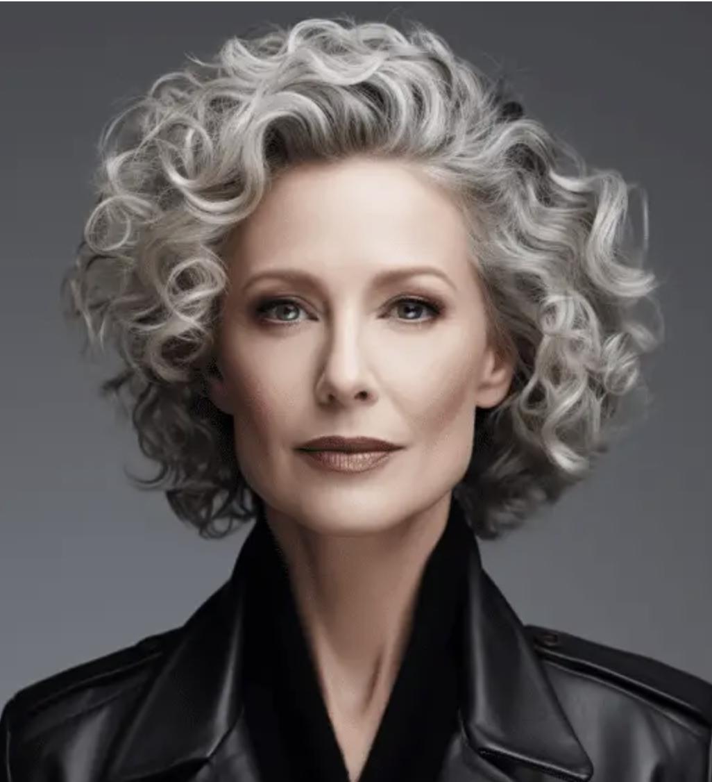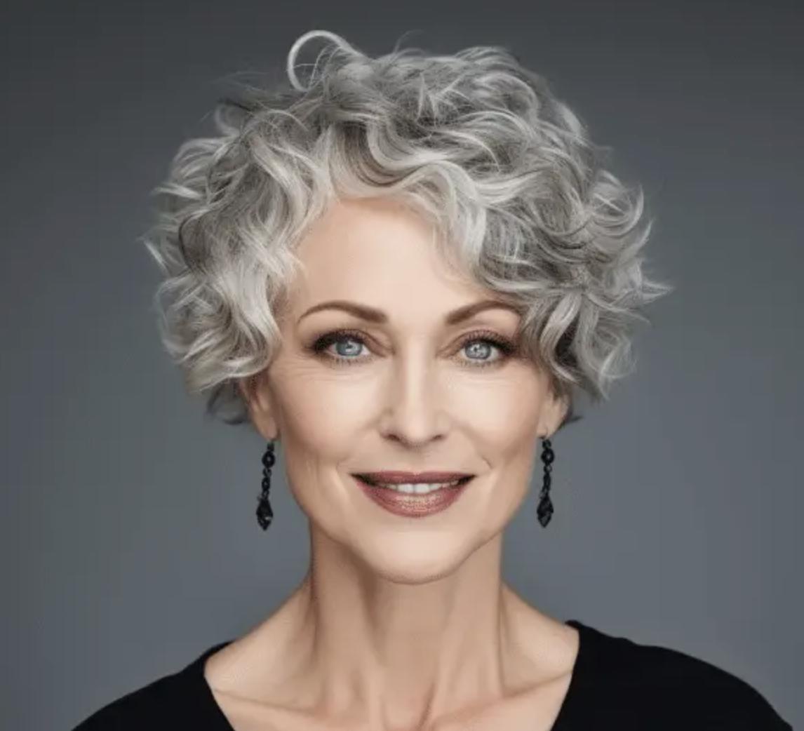 Энергичная и живая прическа, которая отлично смотрится с волосами, с большим процентом седины.