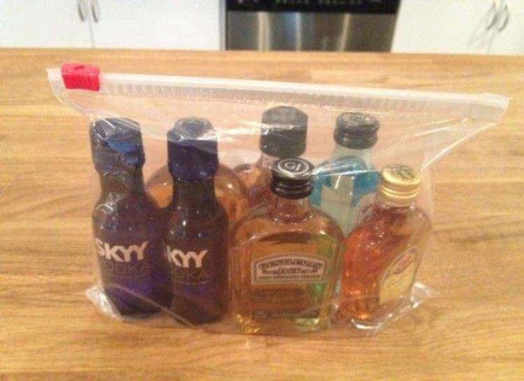 3. Вам разрешено проносить на борт самолета свой алкоголь, если его объем не превышает 100 мл и помещается в пакет на застежке размером 20 x 20 см