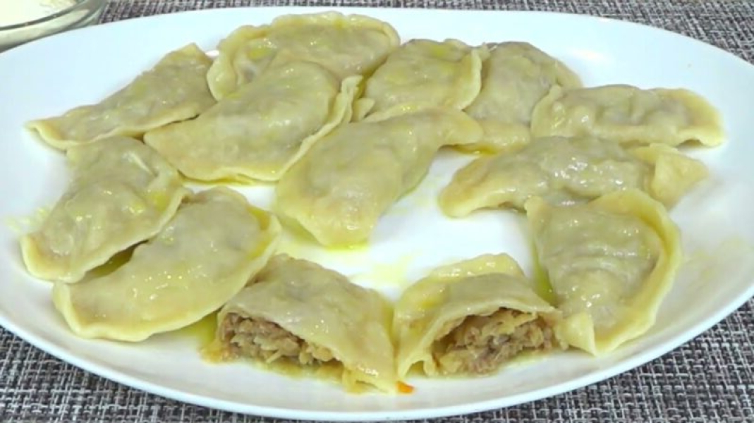 Вареники з капустою та фаршем — це бюджетний варіант, коли не вистачає м’яса на звичайні пельмені. Подавати вареники можна зі сметаною та вершковим маслом.
