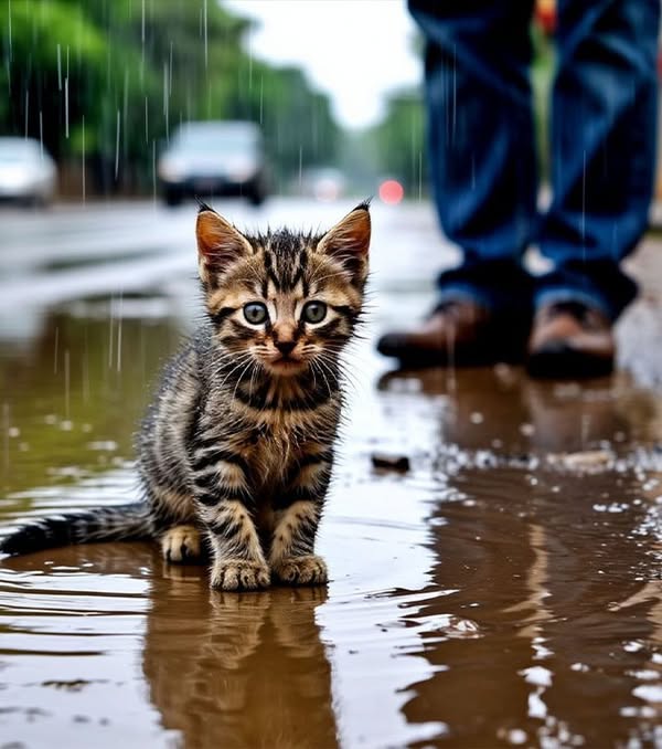 Крошечный, исхудавший, промокший насквозь. Черная шерстка слиплась сосульками, а сам он казался таким беспомощным, что сердце невольно сжалось. Котенок слабо шевелился, пытаясь поднять голову, но сил почти не осталось.