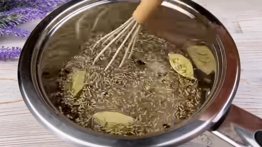 Ставимо воду в каструлю. Додати по 1 столовій ложці солі, перець горошком і духмяний, коріандр, розмарин, чебрець, лавровий лист і перемішати.