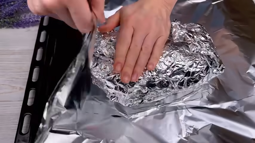 Загортаємо м’ясо в два шари фольги і викладаємо на деко. Поставте деко в розігріту до 190 градусів духовку на 90 хвилин.