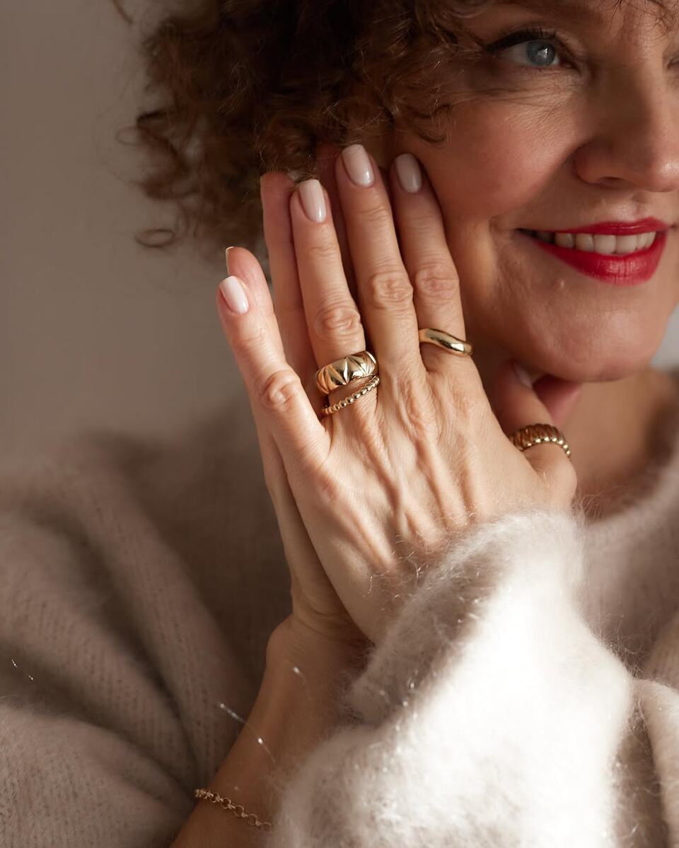 Гострі або квадратні нігті вже не в тренді. Овальна або міндалевидна форма — універсальна й омолоджує. Щодо кольору — натуральні відтінки, класичний червоний чи блискучий нюд працюють краще за будь-який гель з блискітками.