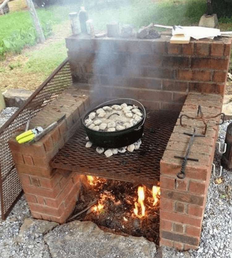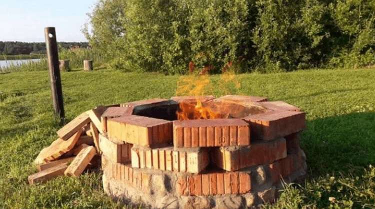 При помощи кирпича можно сделать место для костра. Во-первых, это эстетически красиво, а во-воторых, — зола не так развеивается по территории дачи и меньше наносит вреда земле.