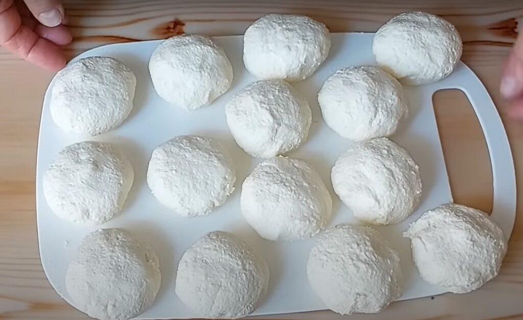 Залишаємо сир під харчовою плівкою на 45 хвилин до набухання манної крупи. Формуємо маленькі грудки з сиру.