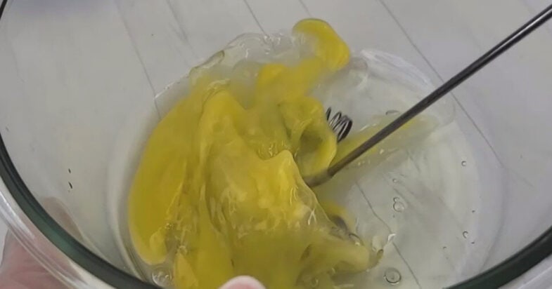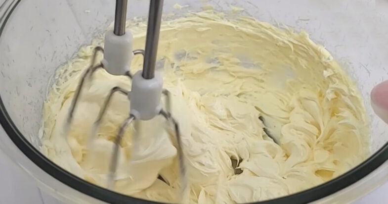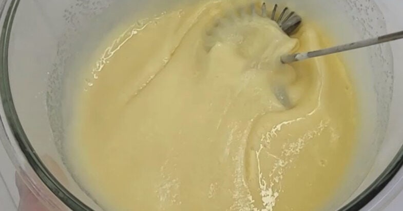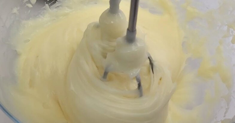 Заварное основание перемешиваю на минимальной скорости, чтобы оно смягчилось.