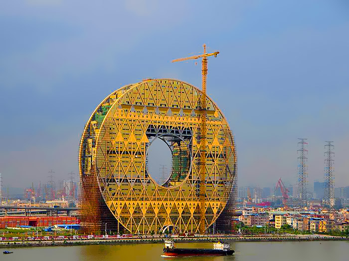 📌 Здание-монета (Гуанчжоу, Китай) — идеально круглое, как символ удачи и достатка.