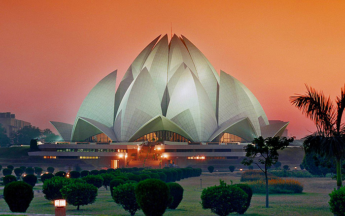 📌 Храм Лотоса (Дели, Индия) — белоснежный, вдохновлённый лепестками цветка.