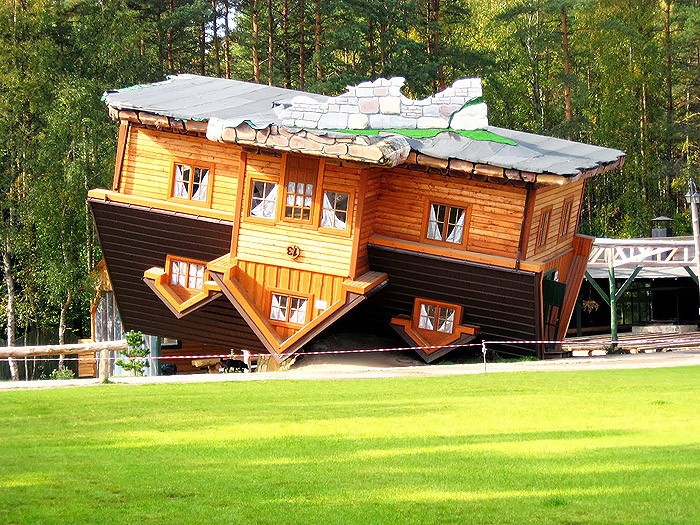 📌 Перевёрнутый дом (Шимбарк, Польша) — где всё стоит вверх дном, включая мебель.