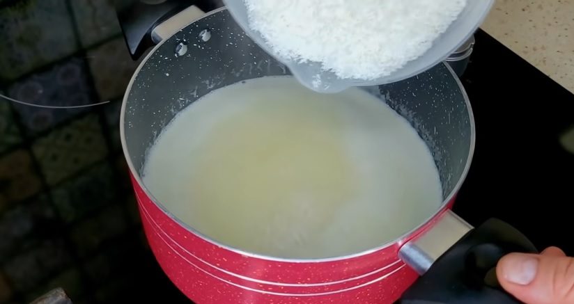 Ми перемішуємо до однорідності і після закипання додаємо кокосову стружку. Знову дайте закипіти і варіть 3 хвилини.