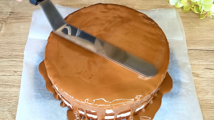 Для глазурі розтопіть шоколад і змішайте його з олією. Поливаємо його зверху на торт.