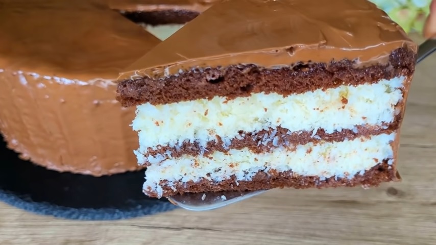 Рецепт із покроковими зображеннями – Домашній торт Баунті – Домашній шоколадно-кокосовий торт – Дуже простий і дуже смачний рецепт