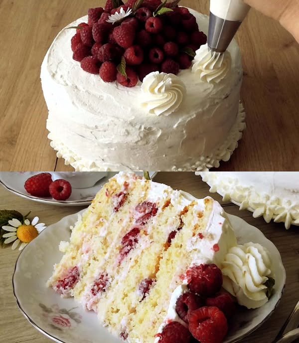 Чарівний торт з ніжними, м’якими, вершково-молочними коржами і приголомшливо ароматним малиновим кремом! Свіжі ягоди малини надають особливого аромату і неповторний смак цьому тортові! Приготувати такий десерт до чаю абсолютно просто, він не вимагає особливих навичок і умінь! Обов’язково приготуйте і спробуйте цей торт, він вартий того!