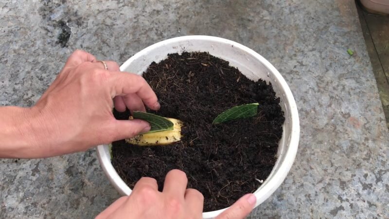 Положите кусочек банана на дно горшка с землёй — это станет естественным стимулятором для будущего ростка.