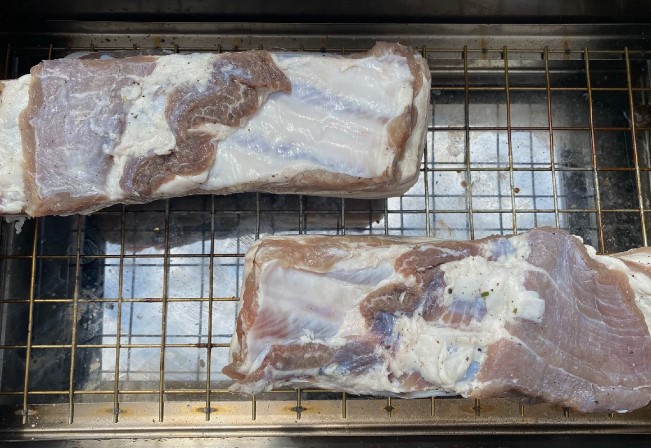 Промивання. Після просолювання обмийте грудинку під холодною водою і дайте обсохнути.