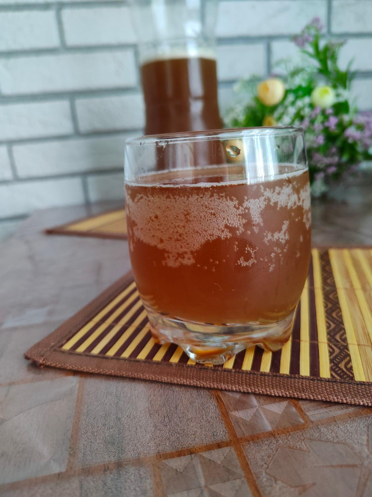 Хорошо перемешиваем. Оно сразу начнет пенить, заваривается напиток.