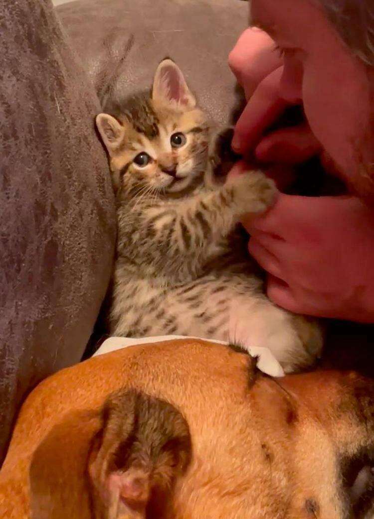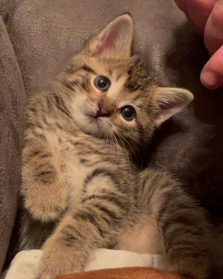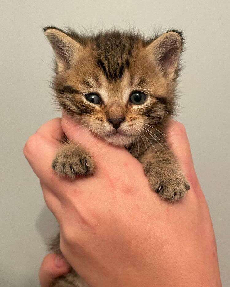 Котёнку остро требовалось тепло, еда и круглосуточная забота. Когда об этом узнали Карли и Кейтлин Салтарски, сёстры и соосновательницы Salty Animal Rescue, то приняли полосатого котёнка с распростёртыми объятиями.