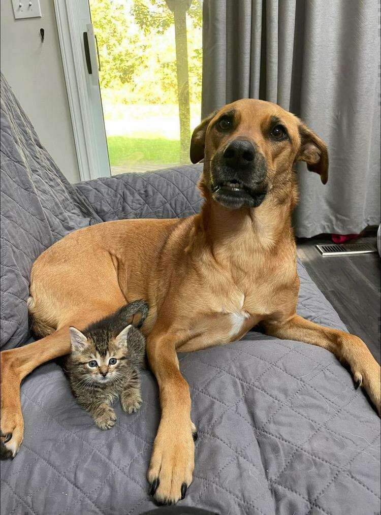 Пискливое мяуканье Марти привлекло внимание домашней собаки Нюд, большой любительницы котят. Она пришла поздороваться с одиночкой – и тогда всё обрело смысл.