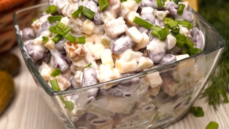 Салат з квасолею та сухариками виходить неймовірно смачний, ситний, поживний та соковитий. Приготувати його можна за кілька хвилин.