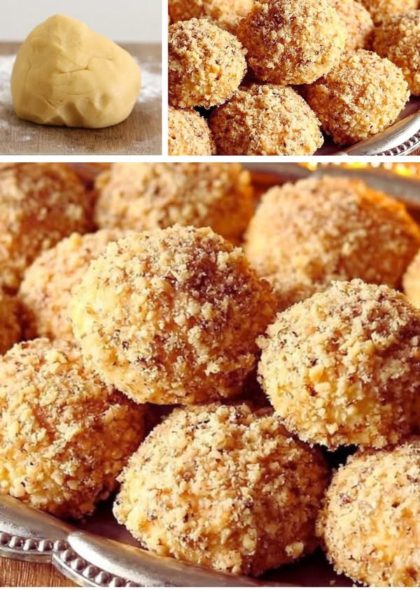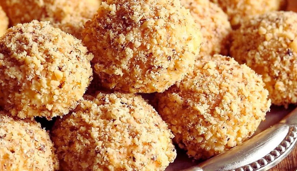 Достаем тесто и начинаем формировать печенье. Для этого от него просто отрываем кусочки, в руках разравниваем, кладем в серединку орешек, защипываем края, формируем ровный шарик.