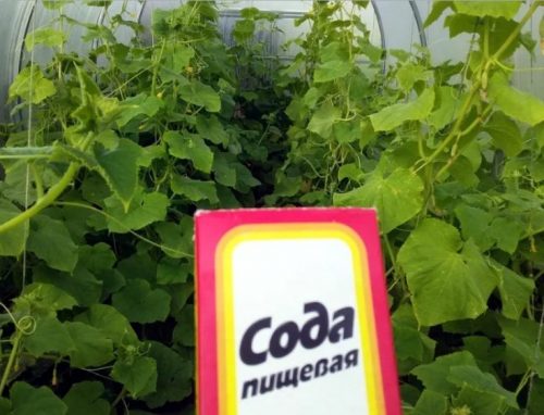 Заливаем 5 грамм соды литром воды (одна лейка – 50 грамм соды) и производим полив один раз на 14 дней. После этого, огурцы растут быстрей, обильней цветут и дают плоды.