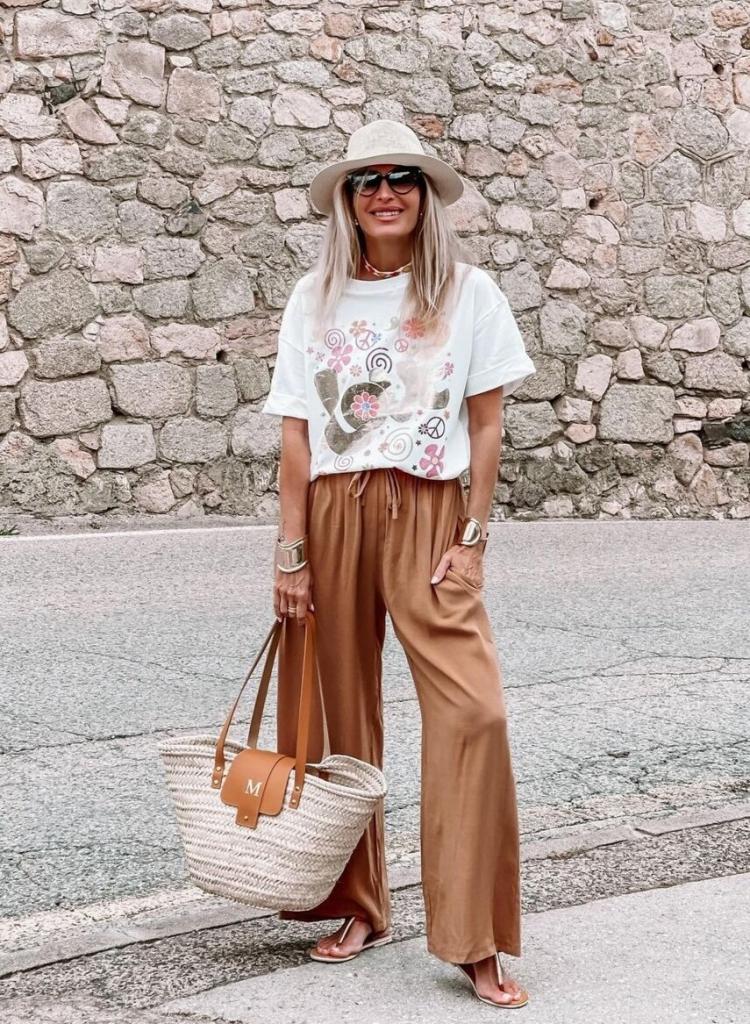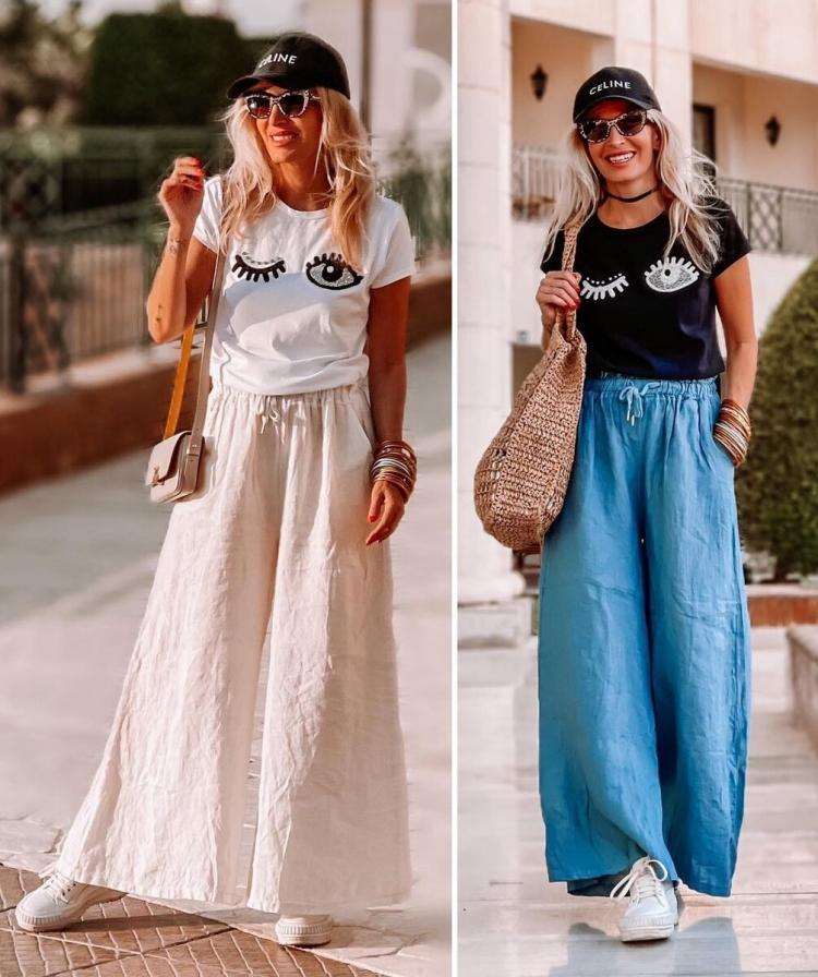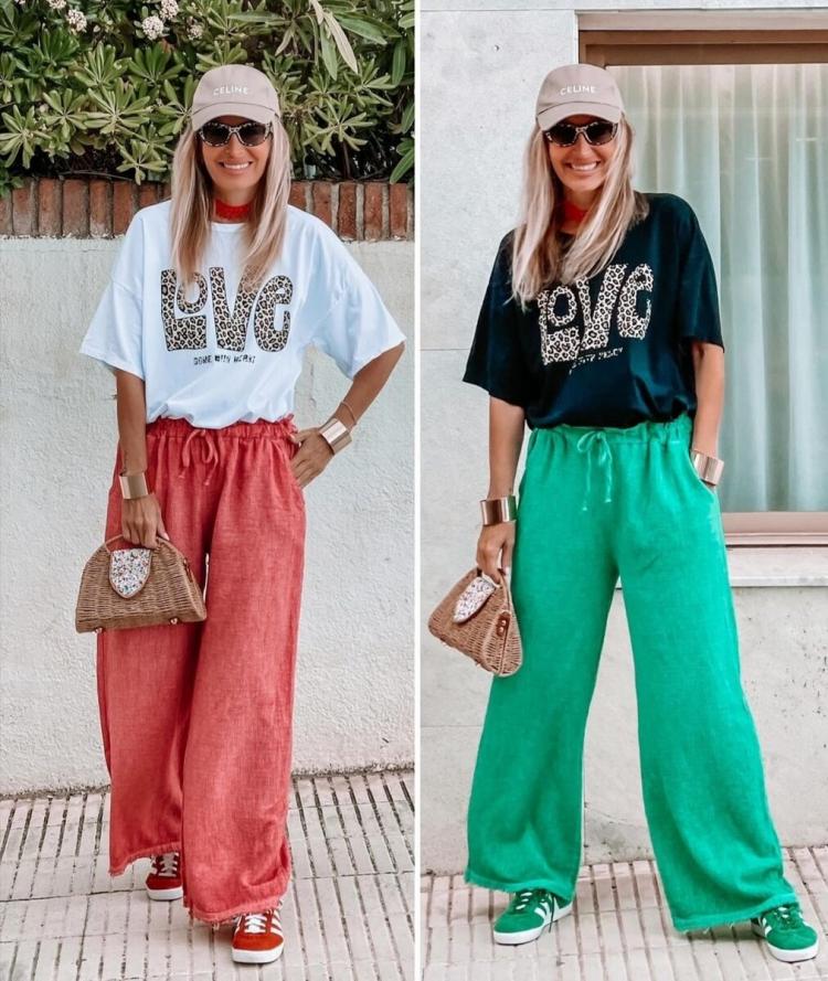 Футболка легко поєднується з будь-якими штанами: від лляних до шкіряних, від широких до вузьких. Карго, джоггери, клеш — вибір величезний.