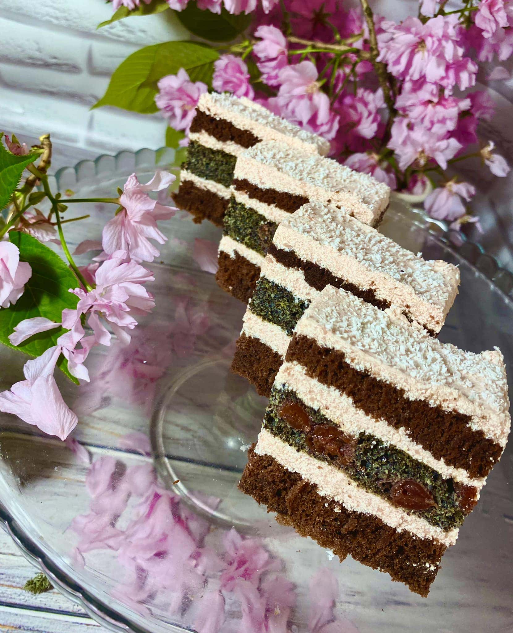 Неймовірне цвітіння сакур у нашому місті надихнуло мене на створення нового пляцка «Сакура». Смак вишневий з ноткою шоколаду, в поєднанні з маком. М‘якенький, вологий з кислинкою.