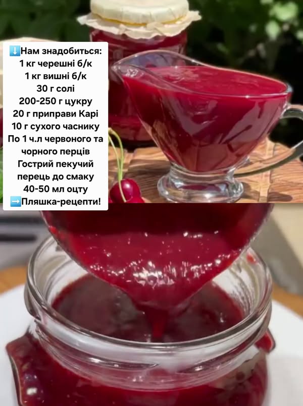 Черешнево-вишневий соус до м’яса – дуже смачний, кисло-солодкий соус! Відмінна заготівля на зиму!