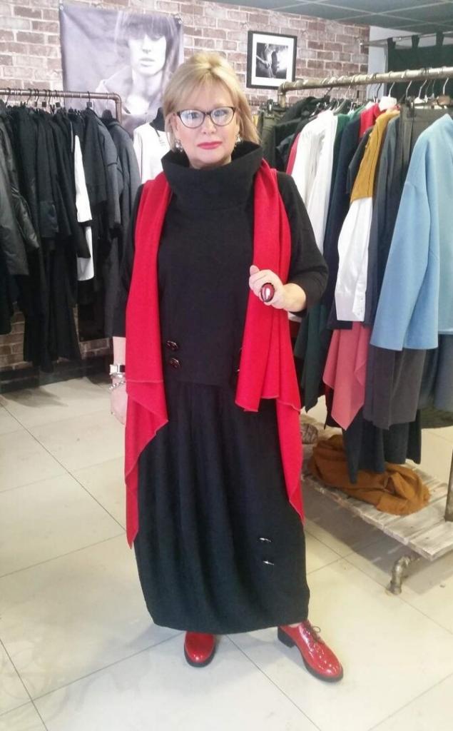 Сміливе рішення. Чорна сукня з високими розрізами з боків дозволяє комбінувати її з джинсами та білою сорочкою. Виглядає яскраво, але носиться легко. Ідеально для жінок, які не бояться бути в центрі уваги.
