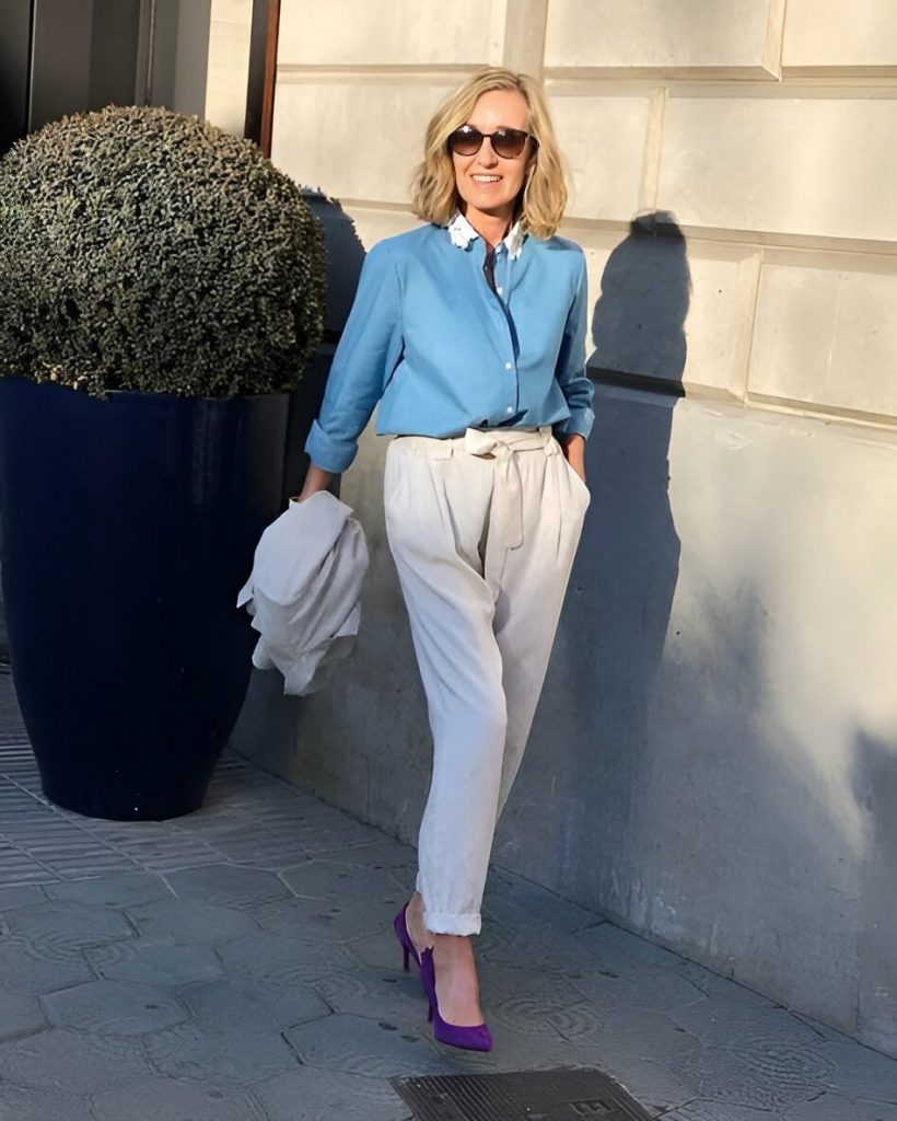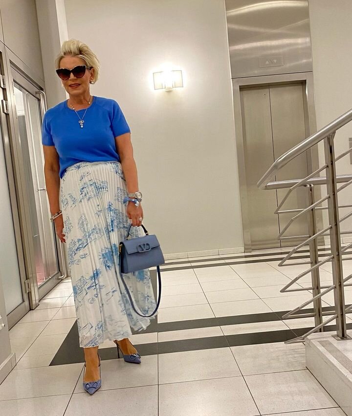 Этот оттенок подойдет всем женщинам, придавая образу легкость и непринужденность. Нежно-голубой часто сочетают с белым и нежными пастельными тонами, такими как розовый, персиковый, горчичный или светло-лиловый.