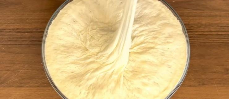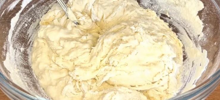 Насипаємо борошно, що залишилося, цукровий пісок і замішуємо тісто. Залишаємо тісто під кришкою на 40-50 хвилин.