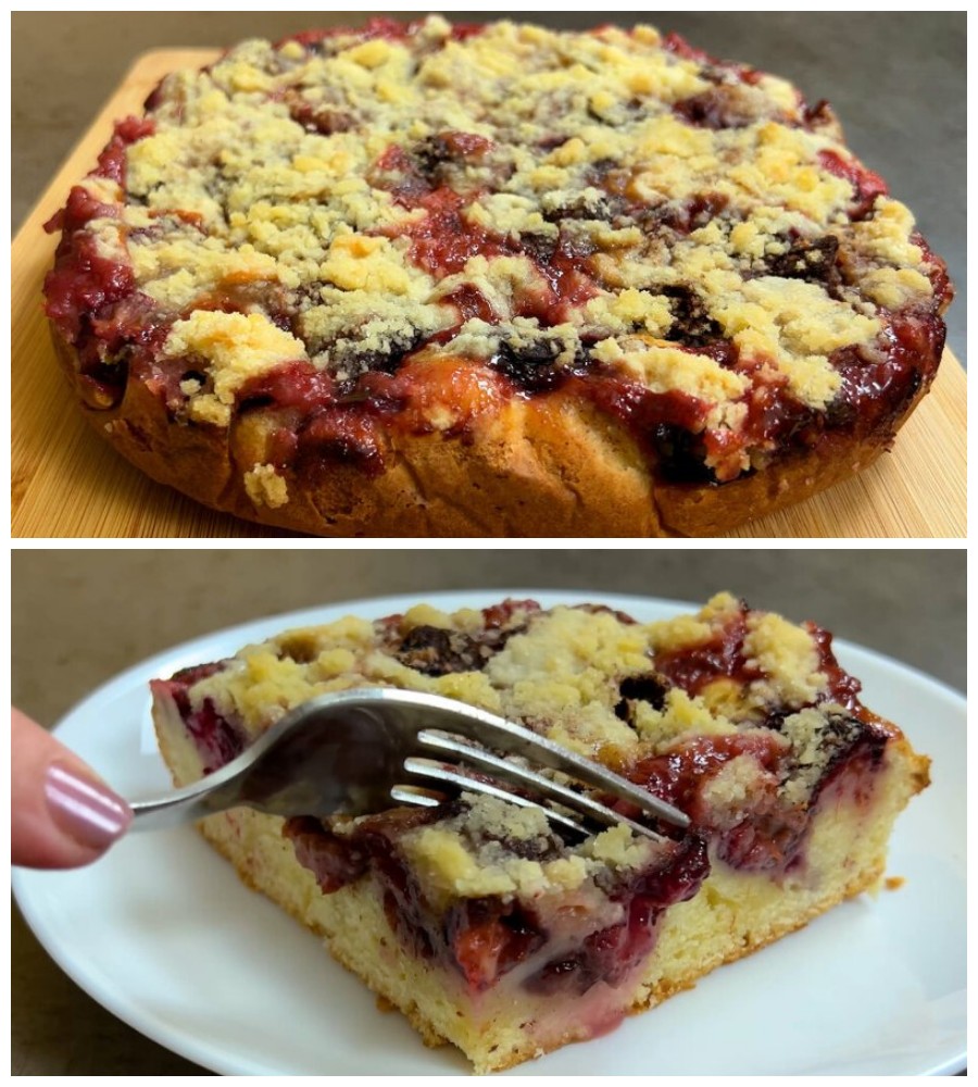 Нежный немецкий пирог с замороженной сливой и хрустящей крошкой