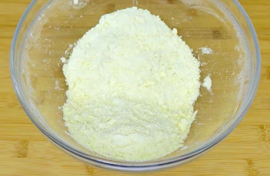 Викладаємо сметану, або грецький йогурт, добре перемішуємо ложкою, потім руками замішуємо тісто.