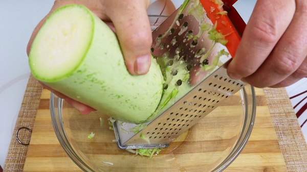 Щоб приготувати цю страву нам знадобитися кабачок приблизно половинка це 350 – 400 гр. Слід натерти на великій терці.