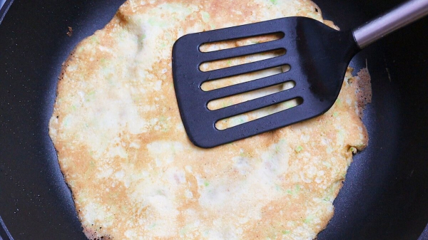Беремо сковорідку розігріваємо, додаємо олію і смажимо млинці