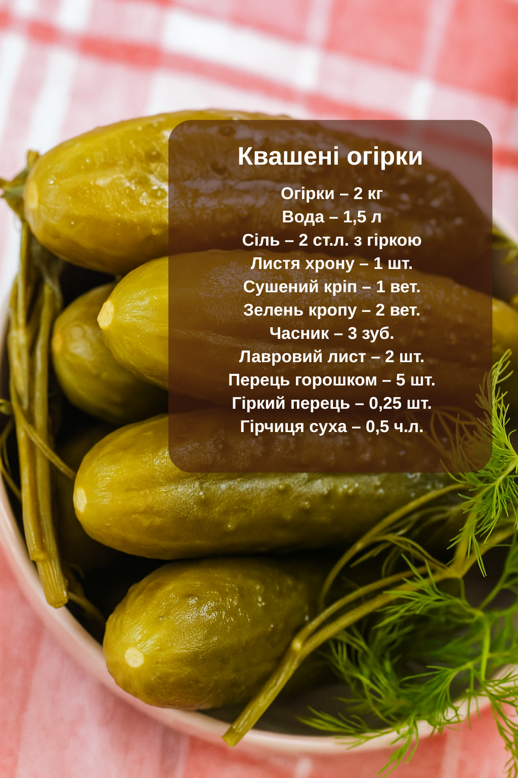 Отже, як приготувати “Квашені огірки”, і що нам для цього знадобиться?