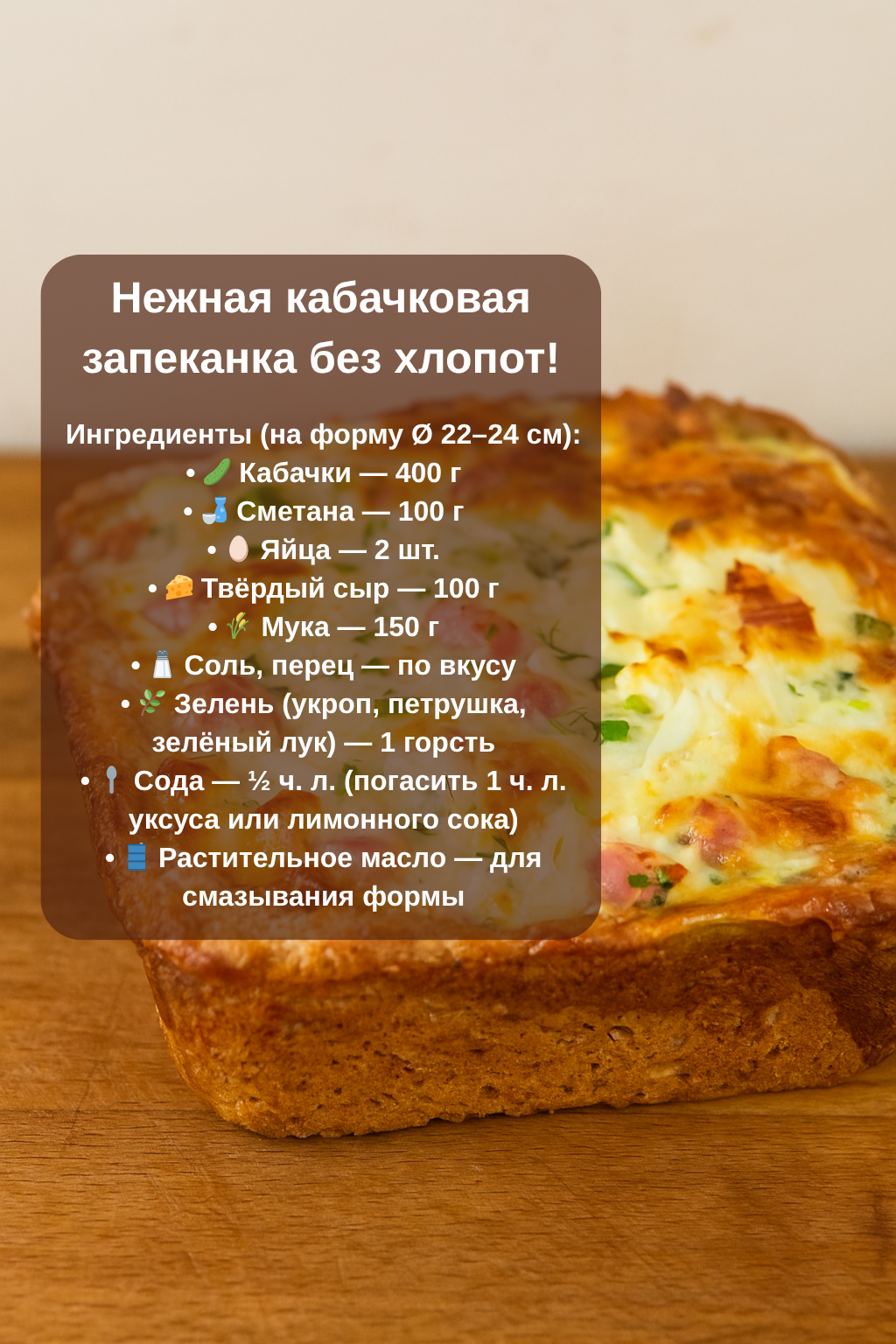 Если вы ищете сытное, сочное и простое в приготовлении блюдо, которое не ударит по бюджету — этот рецепт именно для вас. Кабачковая запеканка со сметаной, сыром и зеленью — идеальный вариант для лёгкого ужина, обеда или перекуса. А ещё она вкусная как в горячем, так и в холодном виде! ❄️🔥