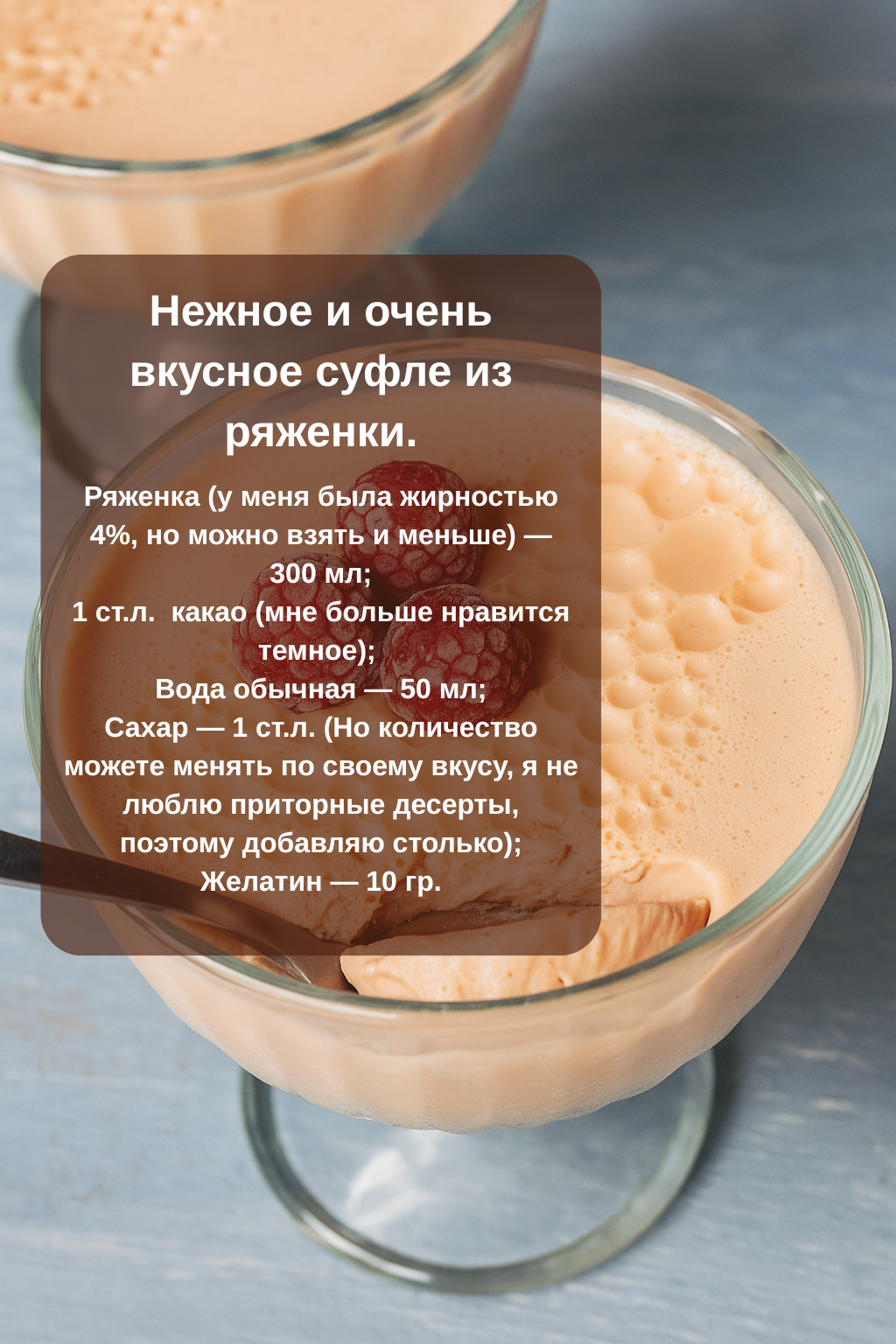 Когда хочется порадовать родных чем-то вкусным и оригинальным, я вспоминаю про суфле из ряженки. Этот десерт получается очень нежным, в меру сладким, а еще он красиво выглядит, что тоже имеет значение.