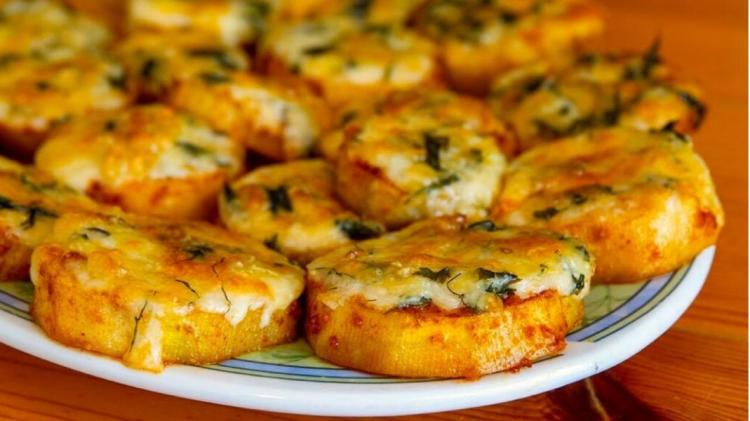 Після цього викладаємо на кожен шматочок кабачка сирну начинку та ставимо лист у духовку ще на 10 хвилин.