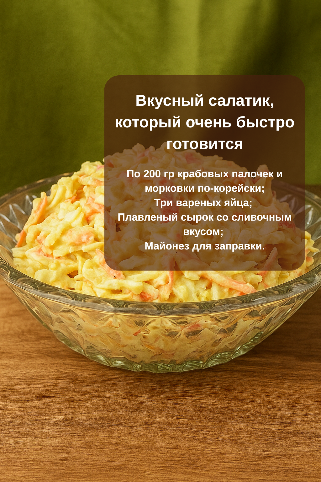 - По 200 гр крабовых палочек и морковки по-корейски;