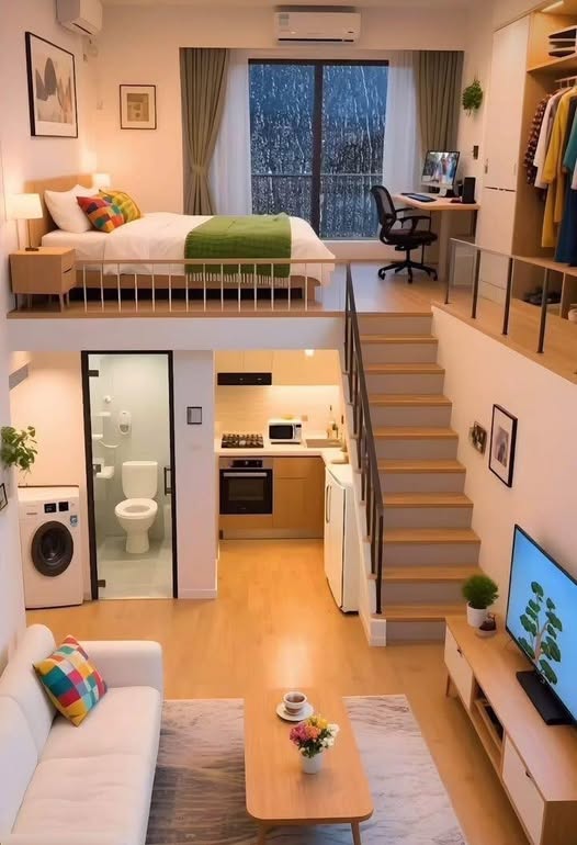• Відкрита спальня. Немає повноцінної ізоляції — якщо хтось на нижньому поверсі дивиться телевізор, заснути може бути складно.