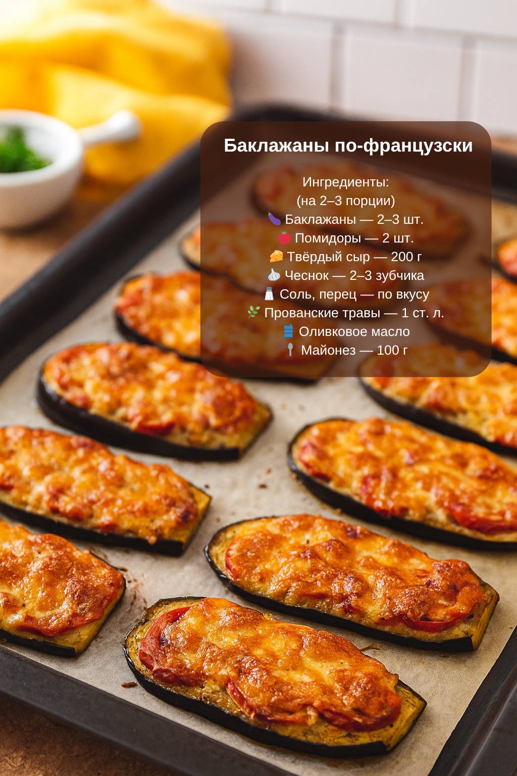 Нежные ломтики баклажана, сочные помидоры, аромат чеснока и прованских трав, расплавленный сыр и румяная корочка из майонеза — звучит апетитно, правда? 🧄🧀🍅