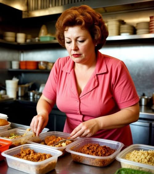 Она покраснела. Её руки дрожали. Из сумки она достала два контейнера. Один — со стейком и овощами, другой — с кусочком шоколадного пирога.