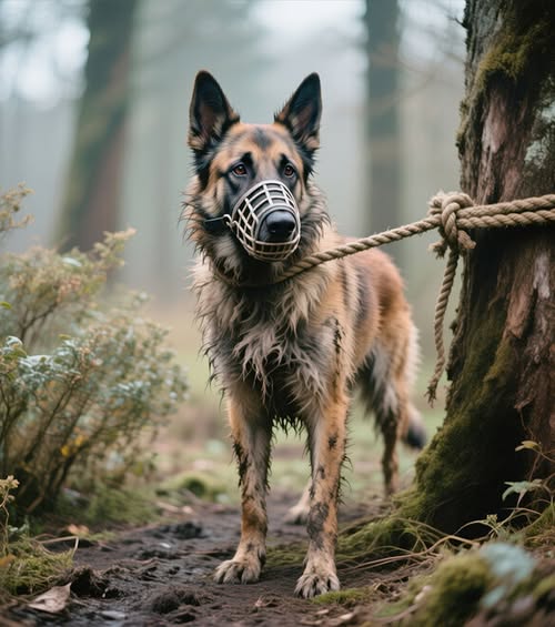 Рядом валялась длинная сухая ветка. Анна схватила её, попыталась дотянуться до узла. Поводок был туго затянут, намок от пота и слюны. Она била по верёвке, толкала, пыталась поддеть, пока наконец — после долгих, мучительных минут — узел не ослаб.